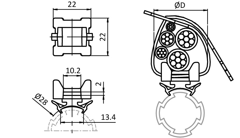 Informations sur le produit "Cross Cable Binder Block D28"
