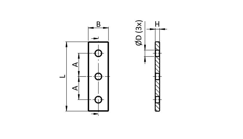 ECO Connection Plate AL Rectangular 3 Hole, 1 Slot Version