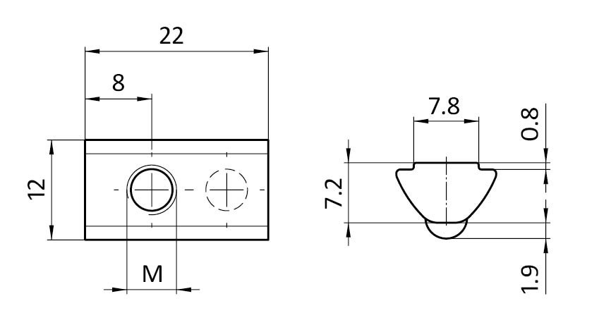 Ecrou basculant 12,0 x 7,2 mm avec bille sur ressort