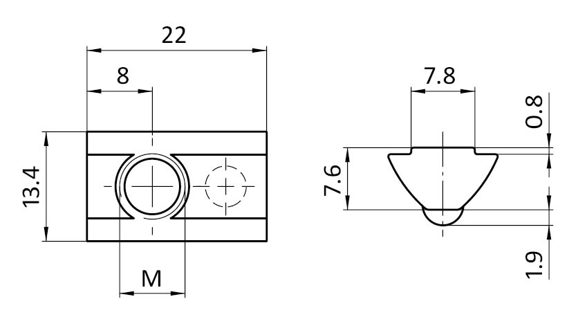 Ecrou basculant 13,4 x 7,6 mm avec bille sur ressort