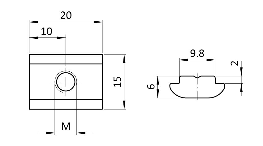 Ecrou basculant 15,0 x 6,0 mm