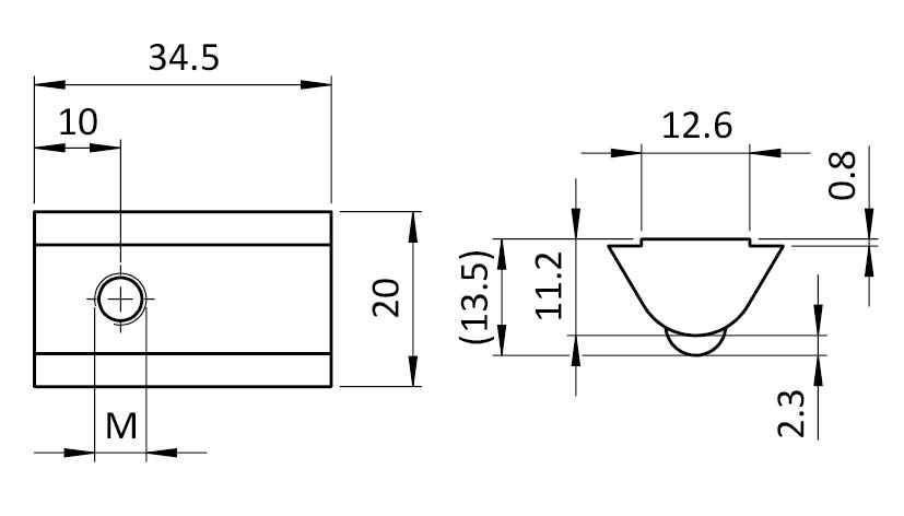 Informations sur le produit "Ecrou basculant 20,3 x 11,2 mm avec bille sur ressort"