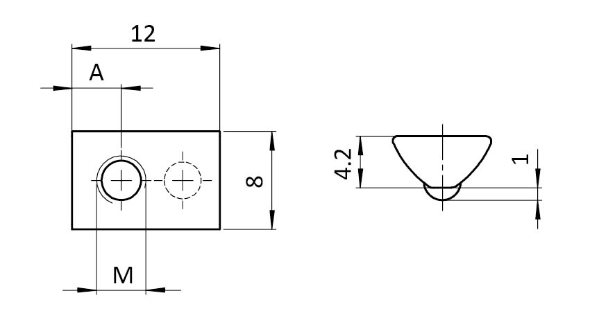 Ecrou basculant 8,0 x 4,2 mm avec bille sur ressort