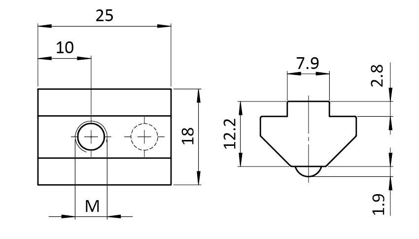 Informations sur le produit "Ecrou de rainure en T 18,0 x 12,2 mm avec bille sur ressort"