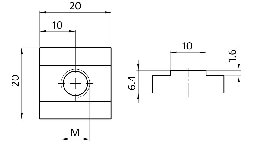 Informations sur le produit "Ecrou de rainure en T 20,0 x 6,4 mm"