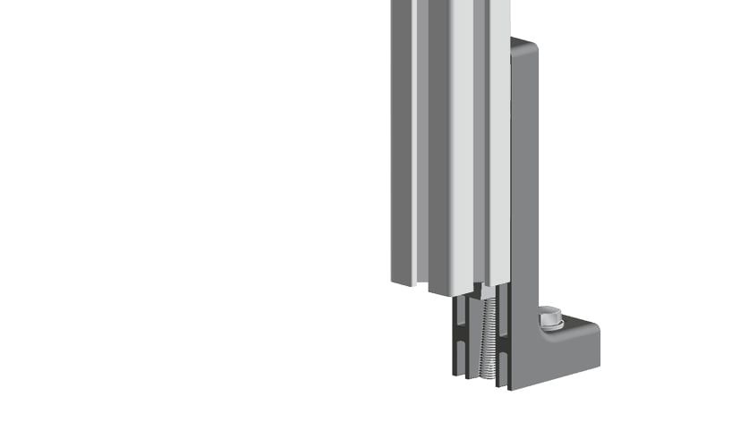 Pour fixer un profilé aluminium vertical au sol avec réglage; avec vis de réglage et plaque filetée