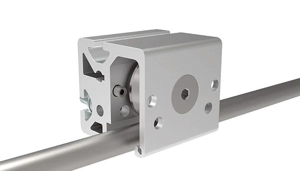 Sliding doors for a wide range of functions in production and assembly can be precisely constructed – whether simple construction for closing small areas or as part of a complex enclosure with practical access. The sliding doors are guided by mounting the FATH Bearing Units on a C-rail system and D14 shafts. For large structures, the guideway can be supported by rollers on the lower side if required.