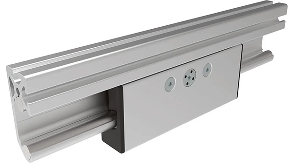 Slide unit or suspension for sliding doors: The application possibilities are virtually unlimited. Since the FATH Bearing Units can also be installed offset by 90°, a 3D printer, for example, can be moved vertically and horizontally by attaching the appropriate slide units.