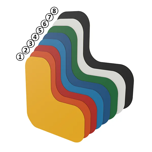 L’impression couleur est appliquée sur la face intérieure et recouverte d’un film transparent, ce qui protège durablement l’image imprimée contre l’usure et les rayures.