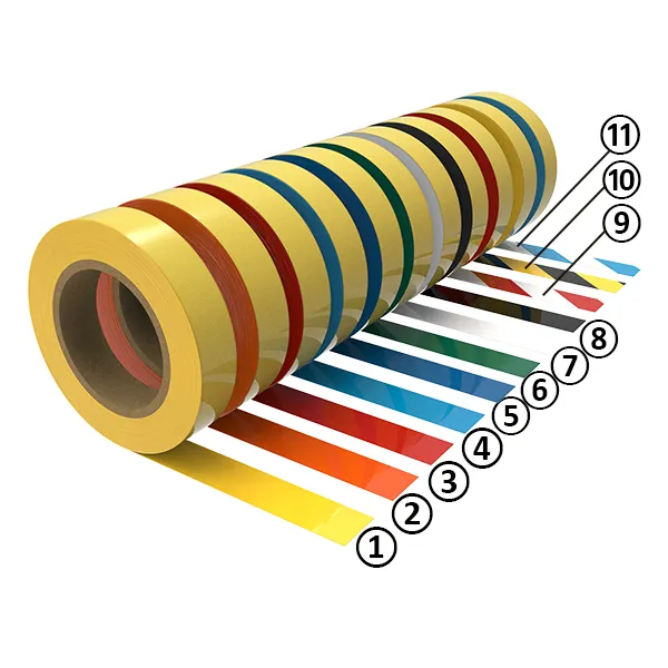 Les bandes sont disponibles en largeurs de 50, 75 et 100 mm et dans toutes les couleurs importantes pour marquer (p. ex., jaune, rouge, bleu, vert, blanc, rouge/blanc, noir/jaune).