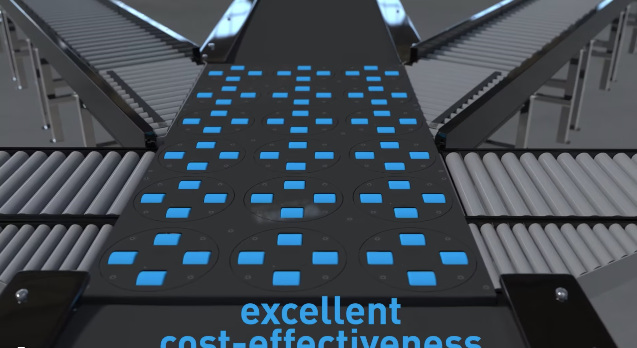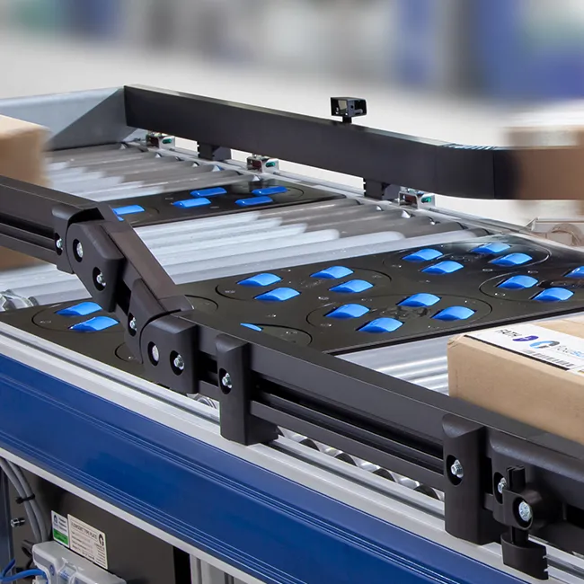 The ZZ-Diverter is a high-speed sorter in which the deflection discs are arranged in a zigzag line. This design allows the sorting of small packages with a size of at least 80x80mm.