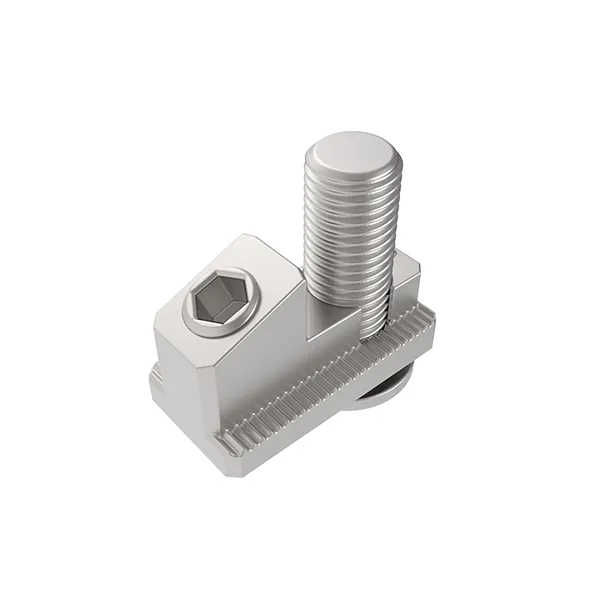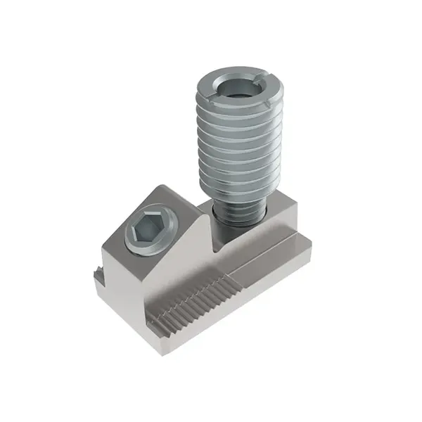 The Profile Connector 90° is made up of a steel body, screw, pre-assembled set screw and, for the slot 10 version, an additional reducing bush. The assembly screw is available as a metric or self-forming version and is easily screwed into the core hole in the profile in order to fasten the profile connector. It is then inserted into the profile slot of the second profile. After that, it is put under tension by tightening the set screw with an hexagon socket wrench so that it presses against the head of the mounting screw until the profile connector is firmly seated in the profile.