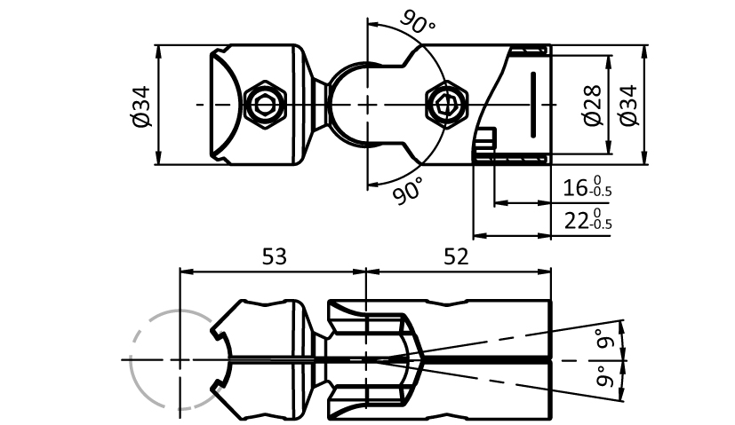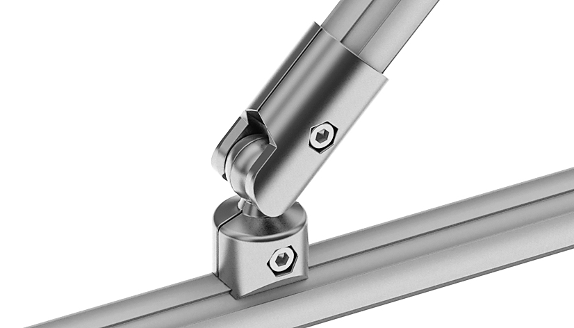 To connect two tubular frame profiles with Ø 28 mm outer diameter at variable angles, with pre-centering; completely pre-assembled set
