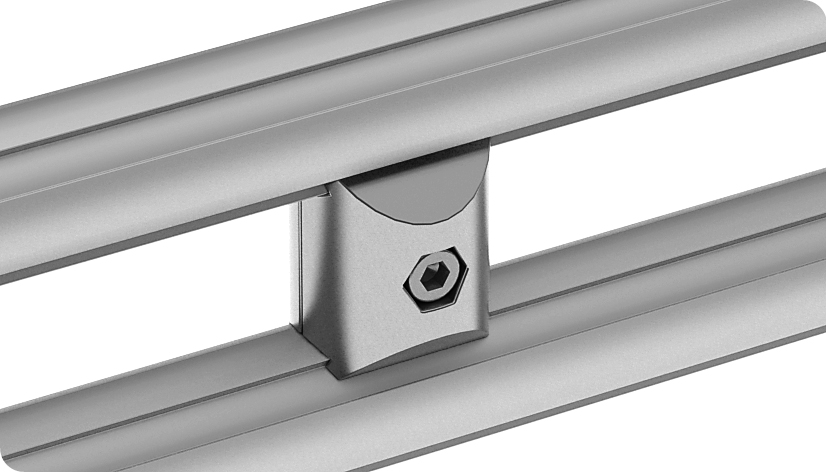 Pour montage parallele d'un profilé alu tubulaire à un autre profilé tubulaire Ø 28mm;avec pré-centrage; kit complètement pré-assemblé