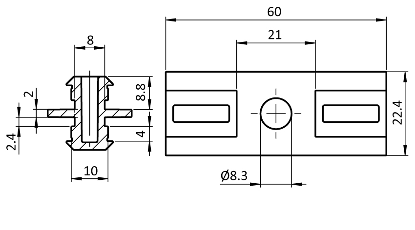 Pour faire coulisser des profilés avec slots 8 et 10, aussi combinable; solution economique et résistant à l'usure, par exemple pour portes coulissantes