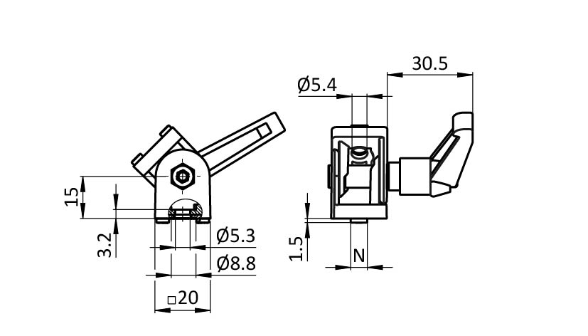 Pivot Joint 20 for M5 with Locking Lever