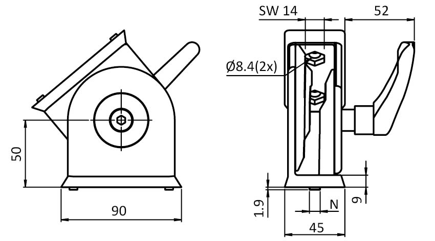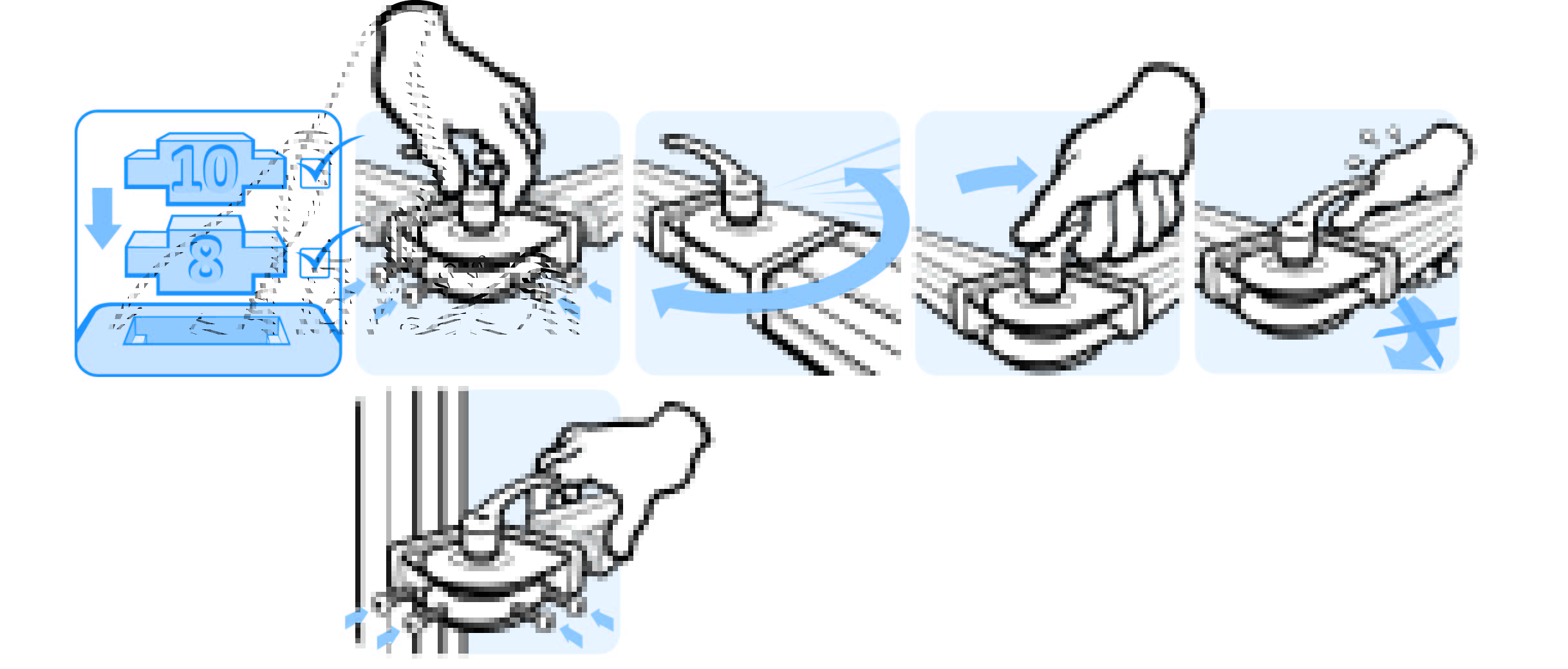 Pour réaliser une connection articulée entre deux profiles ou panneaux qui peuvent être fixés dans n'importe quel angle; Pions de centrage R8 et R10 optionel; par vissage ou devissage d'une vis et leKIPP-levier de serrage vous pouvez ajuster la duretée de l'articulation ou la bloquer dans une position