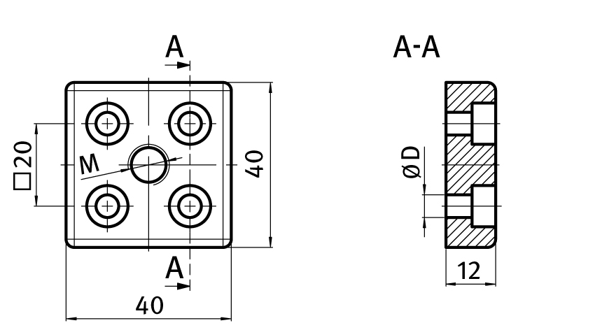 Plaque d’embase et de transport ZN 40 x 40, brut