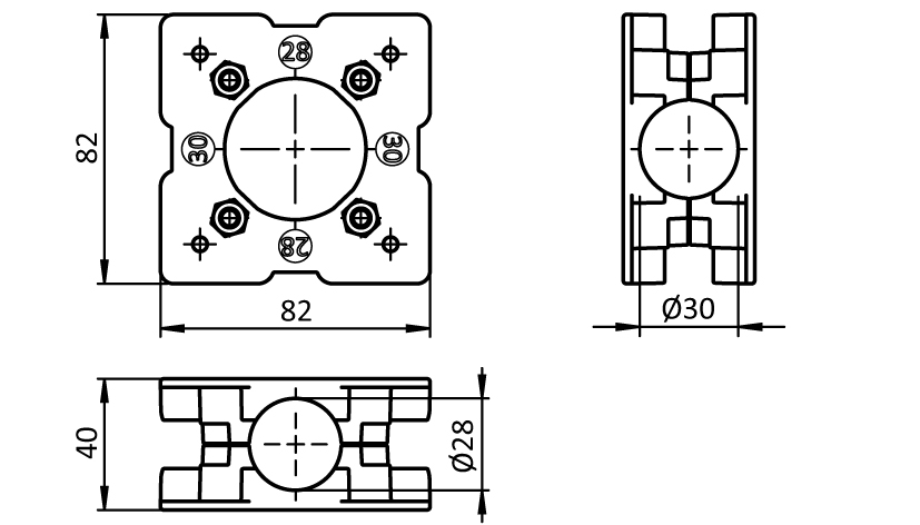 To fix grab trays, grab containers and tray containers to horizontal or vertical tubular frame profiles with Ø 28 mm or Ø 30 mm outer diameter