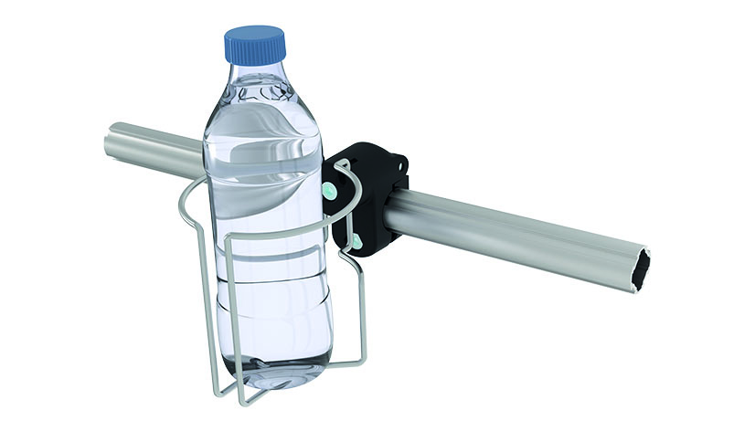 Ready to use bottle holder, 360° turnable, for tubes or tubular frame profiles;