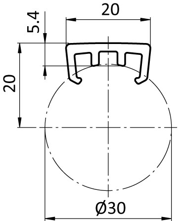 To build simple slipways by clipping on a tubular frame profile with Ø 30 mm outer diameter; also applicable as support strip for the mouting of panels with vario block AL D30