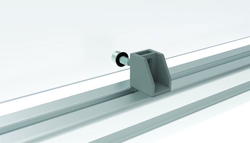 Pour fixer de manière sure des panneaux sur profilés aluminium; avec vis décoltée en accord avec la Directive Machine 2006/42/EC