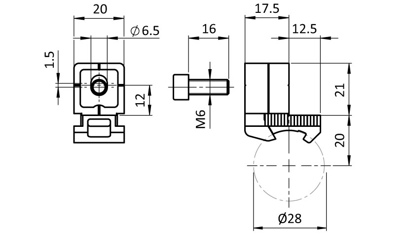 Pour fixer de manière sure des panneaux sur profilés tubulaires d20mm ; en option : Montage sans vis avec clip