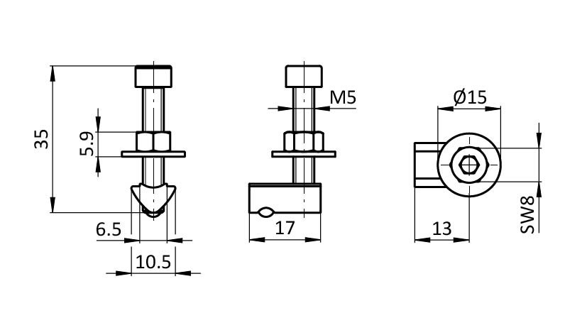 Pour fixer des éléments de bâti au moyen de supports cubiques; completement pré-assemblé, pour insertion laterale dans la rainure, fixation par écrou ; La fixation supérieure définie la position de la structure, par coulissement du bloc de fixation inférieure le cadre peut être ultérieurement fixé et bloqué en position, Un jeu de 12 mm entre cadre et poteau est nécessaire, avec tolerances de +/- 3 mm.