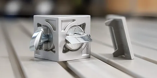 It doesn’t get any faster than this! Simply attach FATH Alu Connection Angles M with pre-installed magnetic rhombus screws to the Profiles with slot 8, tighten the nuts, and you’re done! The aluminum profiles are now stably connected.